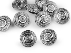 Knoflíky s ozdobným vzorem jsou vyrobené ze slitiny zinku a nemagnetických kovů.