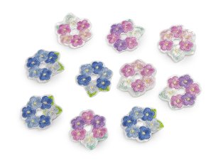 Nažehlovačka květinového věnečku je velice půvabná, má kvalitní celoplošné vyšívání.