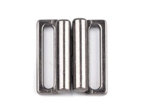 Kovové zapínání na plavky je složené ze dvou dílů a zapíná se vsunutím jednoho dílu mezi druhý díl.