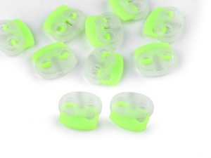 Dvoudírkové knoflíky mají netypické podlouhlé dírky.