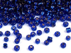 Skleněné sekané korálky rokajl se stříbrným průtahem se efektně lesknou.