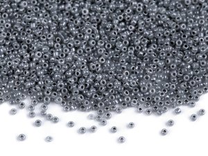 Skleněné korálky rokajl jsou jednobarevné, neprůhledné, s perleťovým efektem.