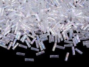 Skleněné sekané korálky rokajl se stříbrným průtahem se efektně lesknou.