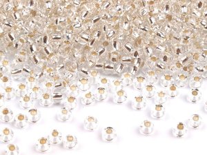Skleněné korálky rokajl jsou jednobarevné, neprůhledné, s perleťovým efektem.