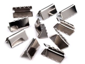 Kovová koncovka je vhodná jako zakončení šňůrek s průměrem 4 mm. [Pomocí kleští (ideálně s úzkou plochou čelistí 070813 nebo 090983) koncovku trochu roztáhneme a vložíme šňůrku.