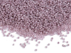 Skleněné korálky rokajl jsou jednobarevné, neprůhledné, s perleťovým efektem.