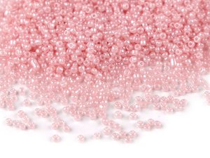 Skleněné korálky rokajl jsou jednobarevné, neprůhledné, s perleťovým efektem.