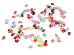 Malé plastové korálky mají zajímavý tvar arašídů.