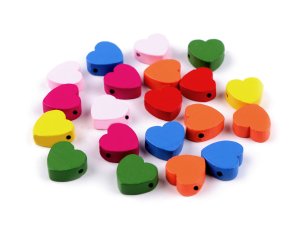 Barevné dřevěné korálky ve tvaru srdce potěší nejen korálkářky, ale i děti.