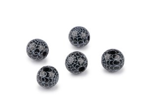 Dřevěné korálky s potiskem pavučiny zaujmou na první pohled.