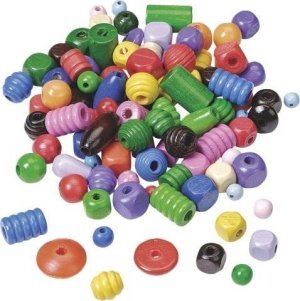 Mix velkých dřevěných korálků využijete k výrobě uch na tašky či na tvorbu postaviček.