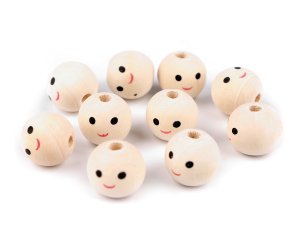 Dřevěné korálky s malovaným obličejem jsou přírodní, nelakované.