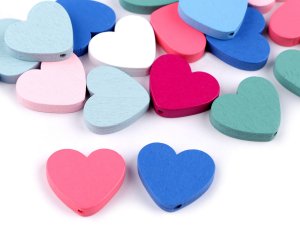 Mix barevných dřevěných korálků srdcí potěší nejen korálkářky, ale i děti.
