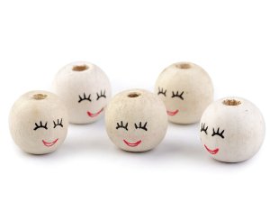 Dřevěné korálky s malovaným obličejem mají díky nalakování jemný lesk.