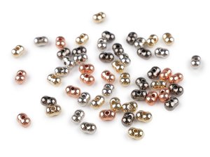 Metalické plastové korálky mají zajímavý tvar arašídů.