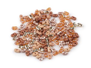Malé plastové korálky mají zajímavý tvar arašídů.
