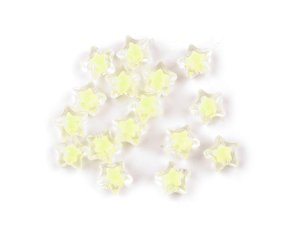 Korálky z pevného plastu broušené do tvaru sluníčka.