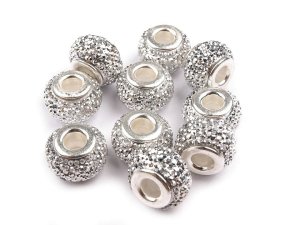Plastové korálky s velkým průvlekem mají vysoký lesk, který věrně imituje opravdový kov.