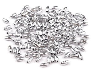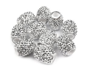Plastové korálky s velkým průvlekem mají vysoký lesk, který věrně imituje opravdový kov.