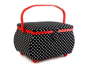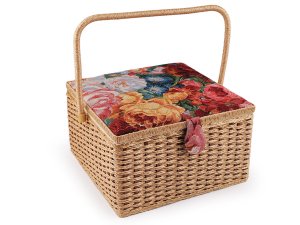 Košík na šicí potřeby o rozměrech 18 x 28 cm, výšce 15 cm nabízíme v různých barevných i vzorových variantách.
