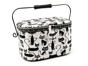 Košík na šicí potřeby s motivem koček nadchne nejen švadleny a pletařky, ale i další kreativní nadšence.