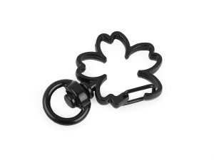 Designová kovová karabina má tvar čtyřlístku, je otočná.