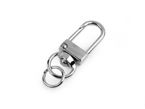 Kovová karabinka je otočná. Využijete ji především k výrobě klíčenek a popruhů na tašky nebo kabelky.