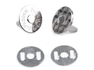Mini magnetické zapínání se skládá ze dvou částí, které se protilehle přišívají na materiál a přitisknou se k sobě.