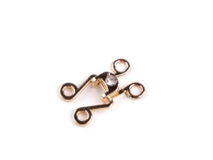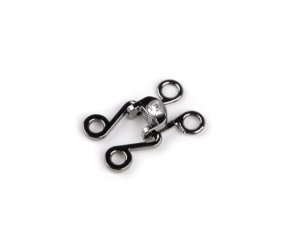 Ozdobné filigránové zapínání zkrášlí vaše kardigany, svetříky, bolerka, vesty i saka. [Zajímavé je jeho použití také ke zmenšování obvodu kalhot či sukní.] Skládá se z háčku a očka.