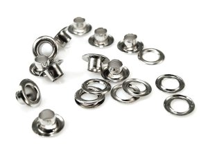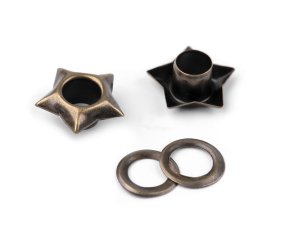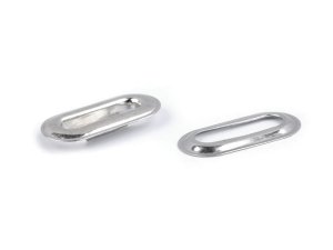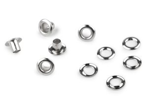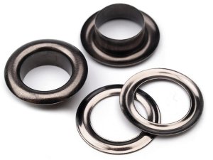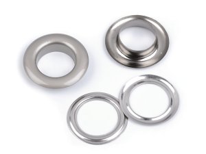 Kovová průchodka slouží k pohodlnému provlečení šňůry nebo gumy textilem.
