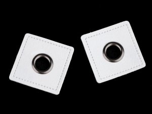 Průchodka s koženkovým čtverečkem je vhodná k našití na konce tunýlků u mikin a bund.