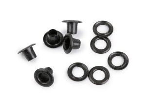 Kovová průchodka slouží k pohodlnému provlečení šňůry nebo gumy textilem.
