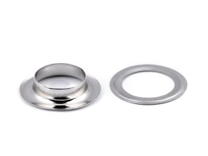 Kovová průchodka slouží k pohodlnému provlečení šňůry nebo gumy textilem.