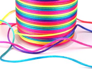 Saténová šňůra působí díky svému duhovému zabarvení vesele a hravě.