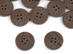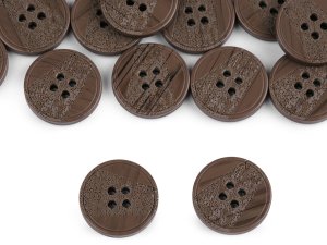 Čtyřdírkové knoflíky mají z části vygravírovaný povrch laserem.
