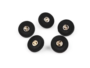 Elegantní knoflíky jsou potažené sametem a v jejich středu je kovová ozdoba.