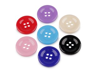 Plastové knoflíky, které jsou z obou stran hladké, využijete k našití nejen na oděvy, ale také na doplňky (klobouky, rukavice, tašky apod.).