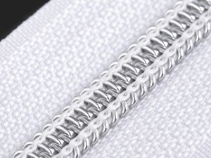 Spirálový zip se stříbrnými zoubky využijete jako zapínání na bundy, kabáty, mikiny i sportovní tašky.