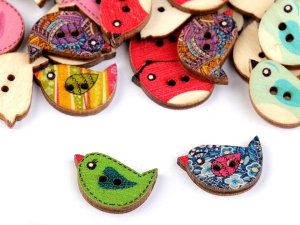 Dřevěné knoflíky ve tvaru ptáčka jsou různě zdobeny, a proto působí zajímavě a taky originálně.