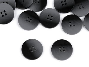 Čtyřdírkové knoflíky mají z části vygravírovaný povrch laserem.