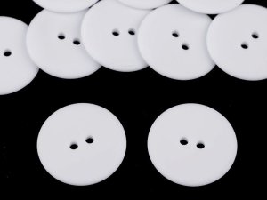 Transparentní plastové knoflíky mají spodní přišívání a hladkou polokulatou hlavičku.