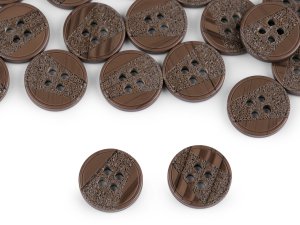 Čtyřdírkové knoflíky mají z části laserem vygravírovaný povrch.