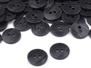 Plastové knoflíky mají spodní přišívání a polokulatou hlavičku.