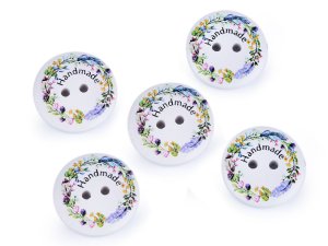 Dřevěné dekorační knoflíky s [nápisem "Handmade" vyniknou] na ručních výrobcích, dárcích a různých dekoracích.