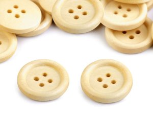 Dřevěné čtyřdírkové knoflíky jsou vhodné k dekoračním účelům.