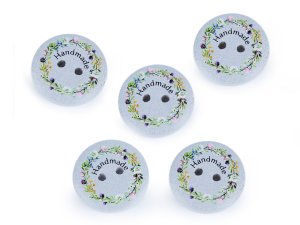 Dřevěné dekorační knoflíky s [nápisem "Handmade" vyniknou] na ručních výrobcích, dárcích a různých dekoracích.