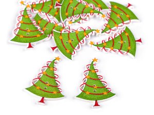 Dřevěné dekorační knoflíky s vánočními motivy.