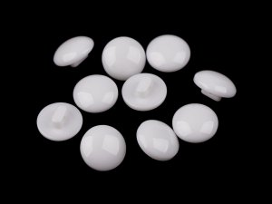Drobný knoflík na potahování se skládá z kovové a plastové části.