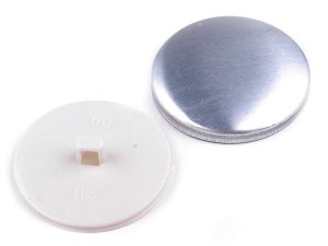 Knoflík na potahování se skládá ze dvou částí - kovové a plastové.