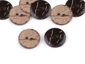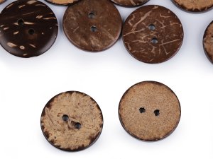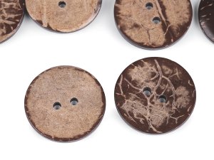 Dvoudírkové knoflíky jsou vyrobené z exotického kokosu.
